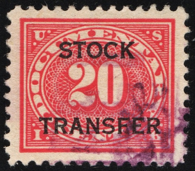RD6 20¢ Stock Transfer Stamp (1918) Used