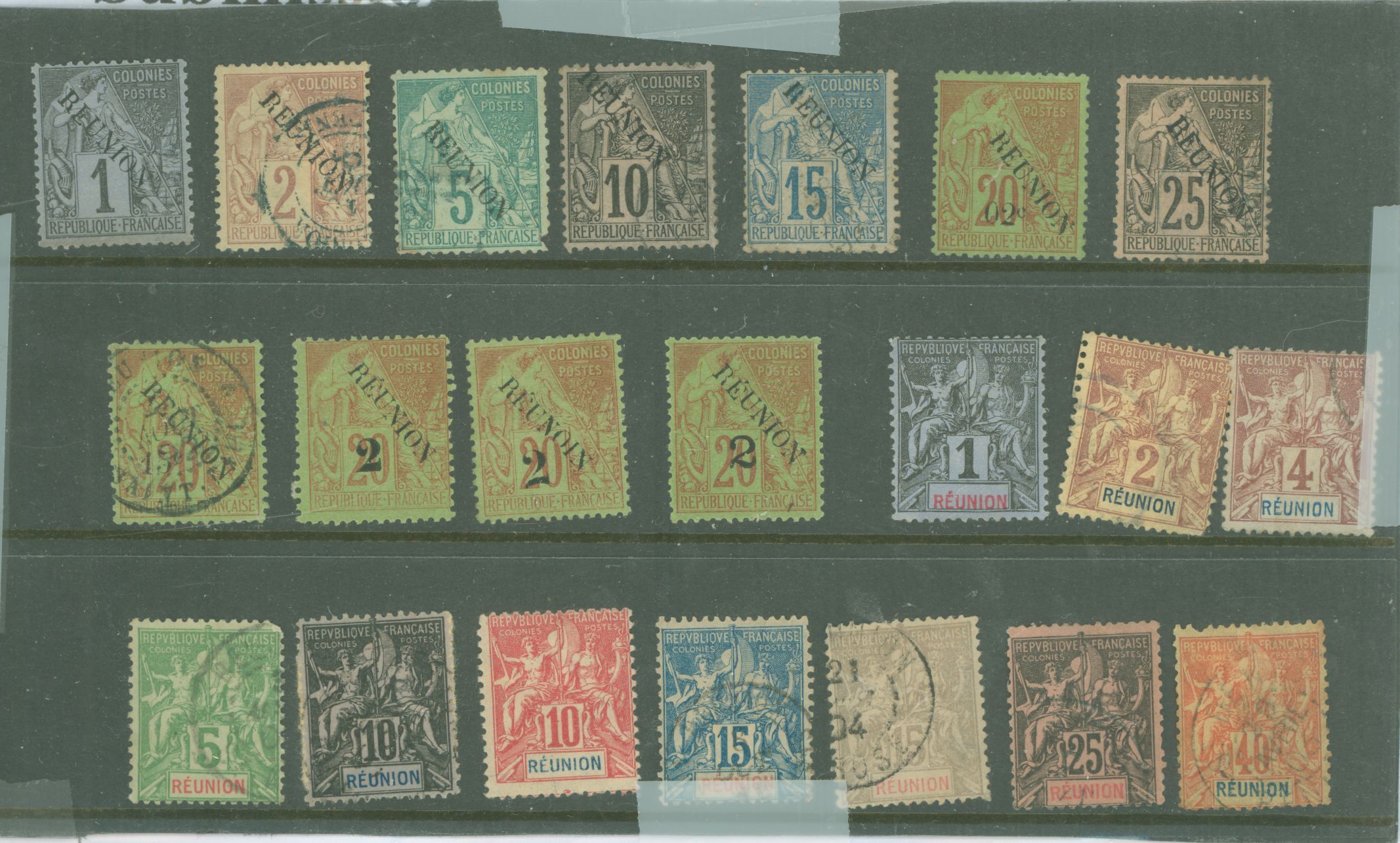French colonies; pulled perf on 40c, France Reunion 1891-1900 navigation and commerce, hi value #23 & 40.APS Stamp Id: 501689814