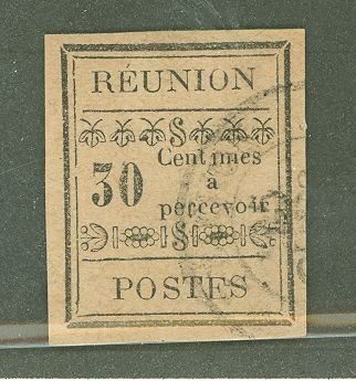 1889 30c black on yellowish, imperforate. Image: Numeral of value with REUNION POSTES inside two frames, 4 full margins - vf. APS Stamp Id: 501951852 APS Seller Id: 678367 Hinge Type: HR
