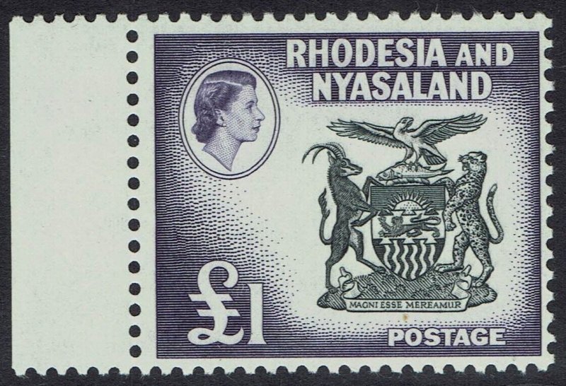 RHODESIA AND NYASALAND 1959 QEII ARMS £1 MNH **