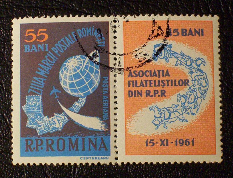 1961 complete air mail set of one with label - Stamp Day