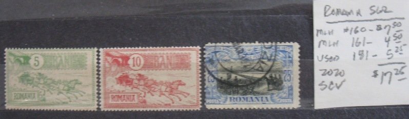 Selection of stamps from Romania Scott #'s 160//181. Total 2020 SCV=$17.25Seller Information