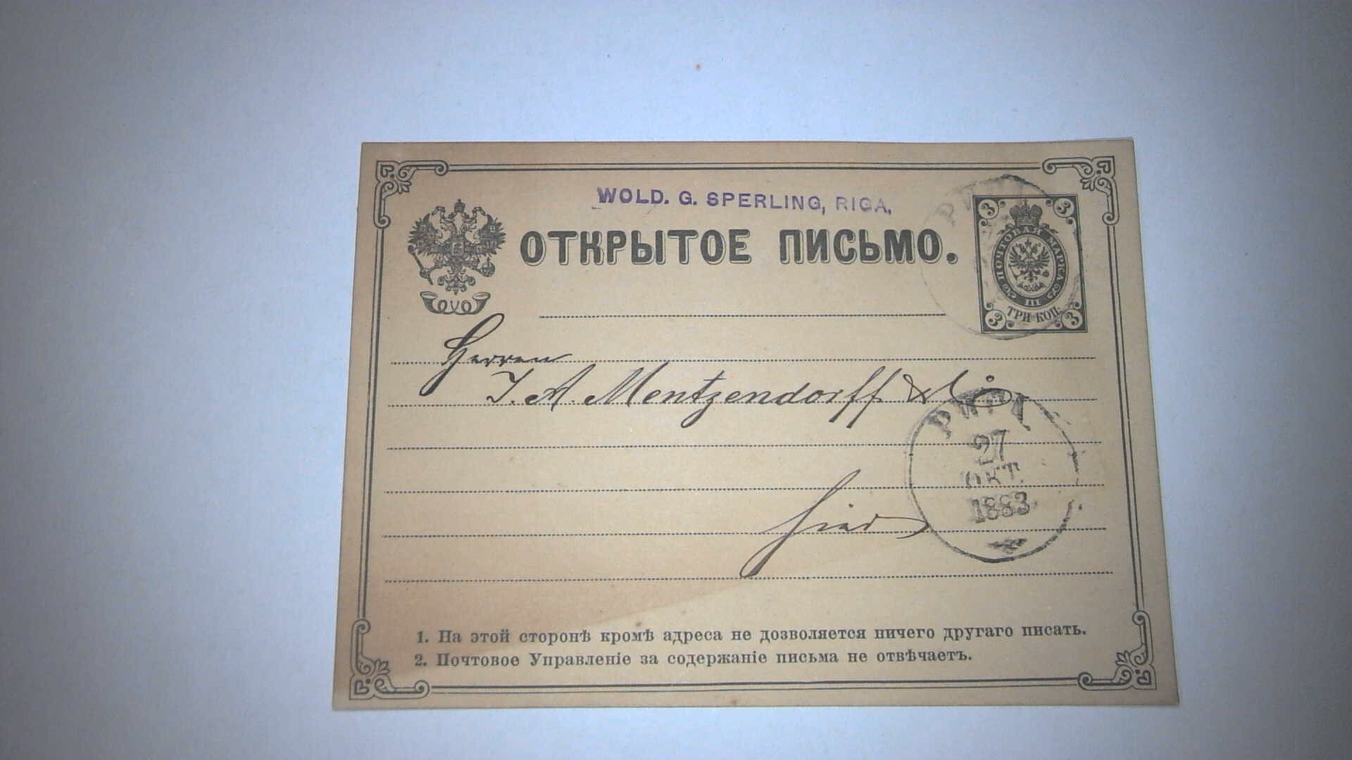 RUSSIA 1883 POSTAL CARD