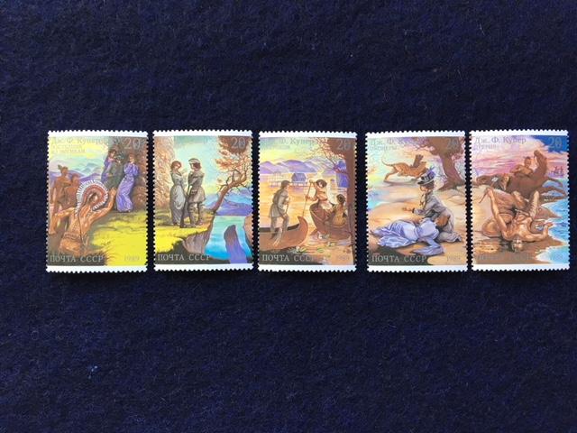 _LOT #H130 - ITEM DESCRIPTION_ __ Russia – 1989 five (5) stamps, celebrating “Scenes from Novels by James Fenimore Cooper” – MNH, SC# 5822 - 5826. See photo. SCV of set is $3.00. _This lot is priced substantially ... Read More