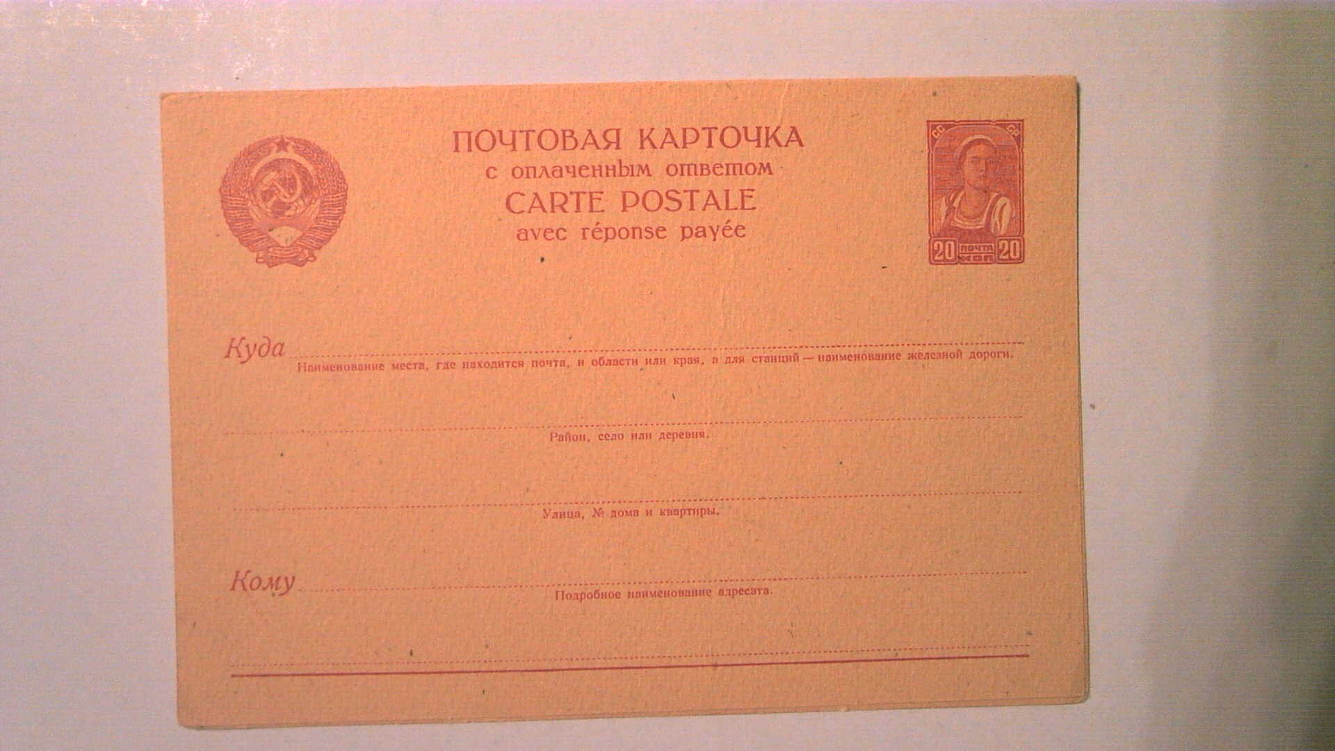 RUSSIA POSTAL REPLY CARD MINT ENTIRE