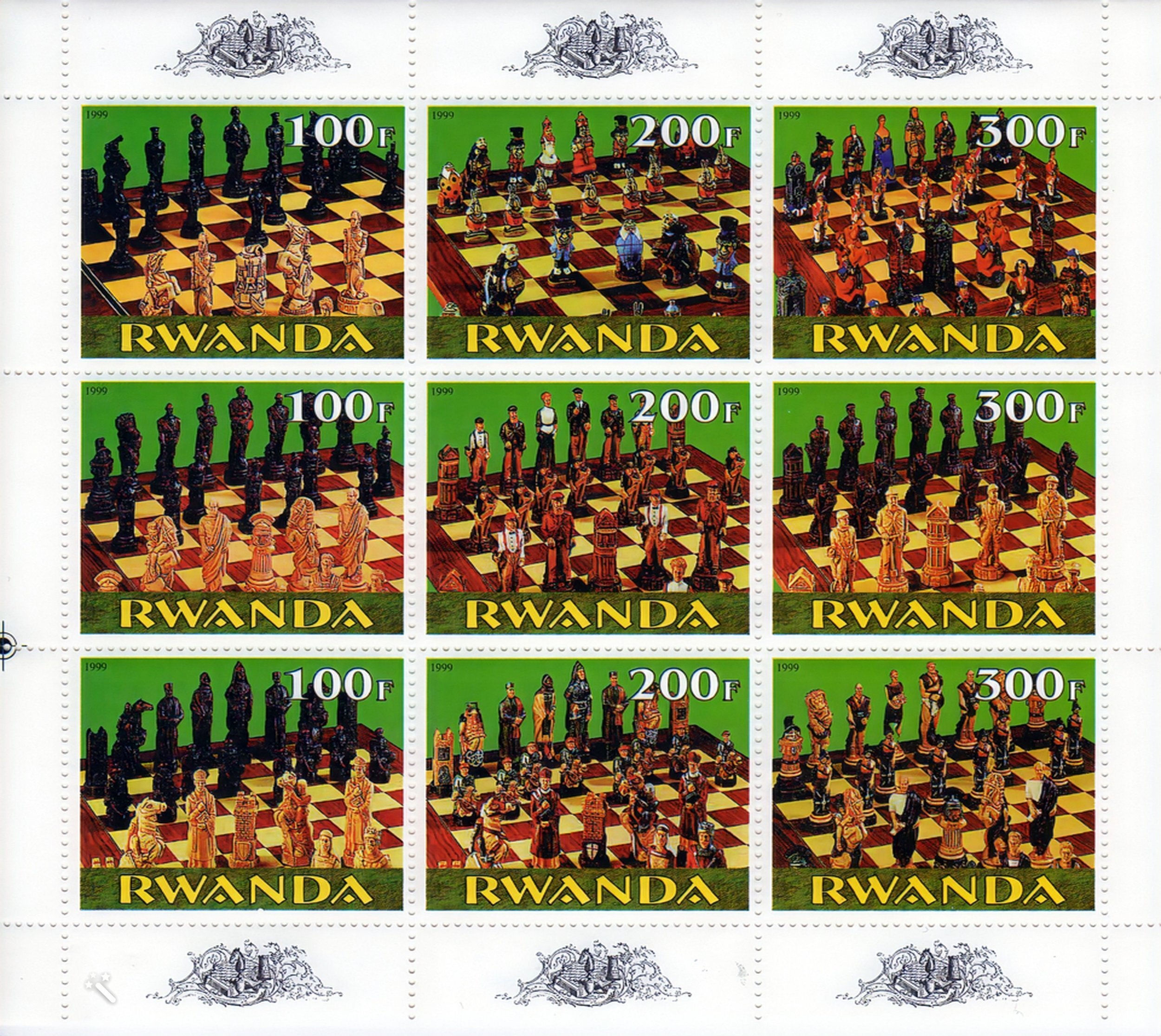 Rwanda - 1999 - CHESS - Chess pieces - Sheetlet of 9 values Perforated MNH VF ConditionSeller Information