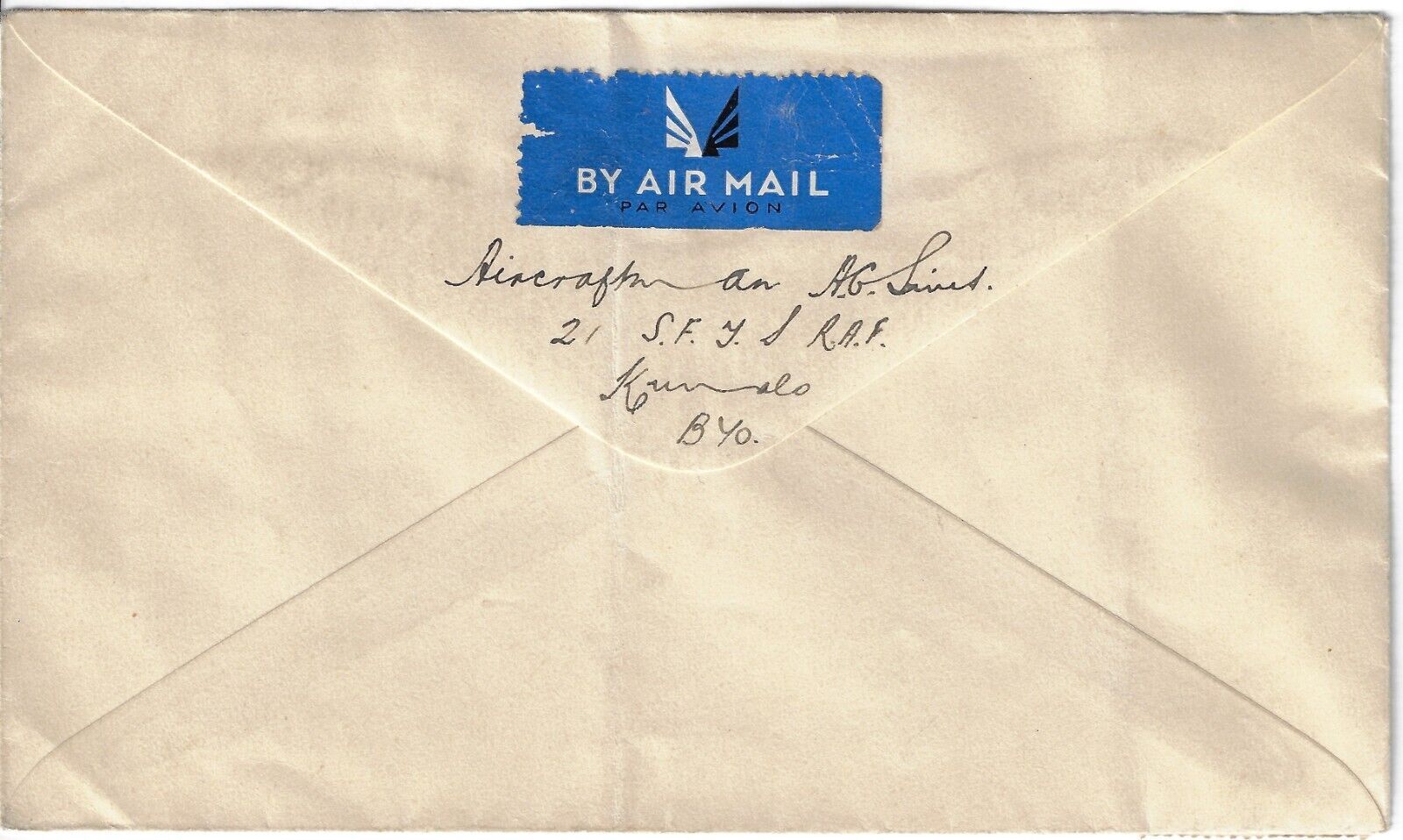 S. Rhodesia RAF cvr to MEForces w/ 1 ½ d. Rhodes recut collar var. SG55a (a4377