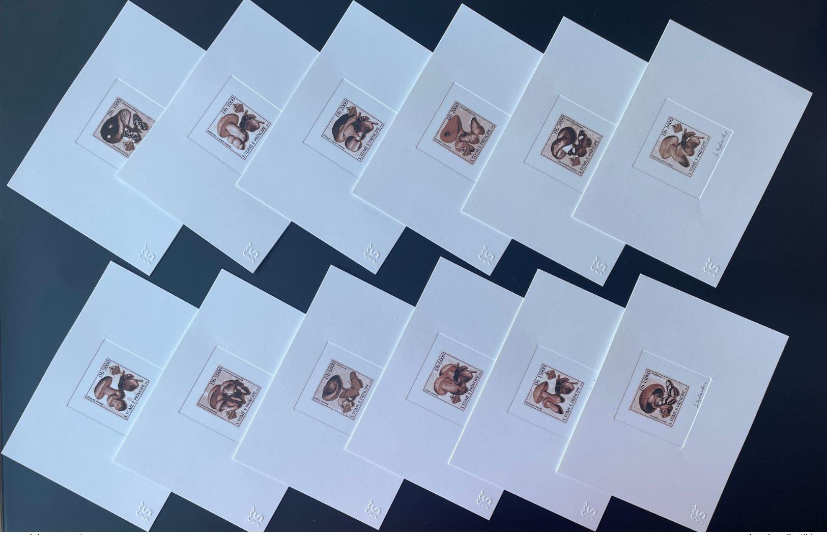 S. Tome Principe 2003 Artist's proof Mi. 2001/6 2007/12 brown mushroom