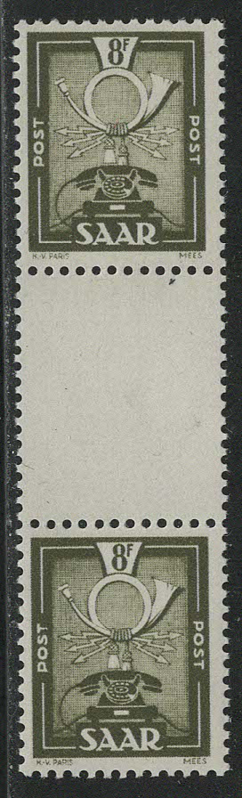 SAAR Scott # 210; mint nh, gutter pair; Michel Germany special # 278ZS, 2016 cv EUR 20.00; Scott not listed; You buy according description and scan. Wysiwyg;