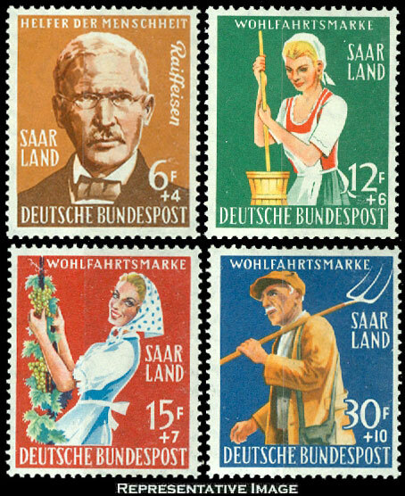 6f+4f Raiffeisen, 12F+6F Dairy Maid, 15F+7F Girl Picking Grapes and 30F+10F Farmer Semi-Postal. Mint never hinged.Seller Information