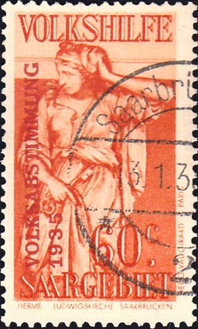60c+20c Anxiety Overprinted Volksabstimmung 1935 Plebiscite Semi-Postal. Used.