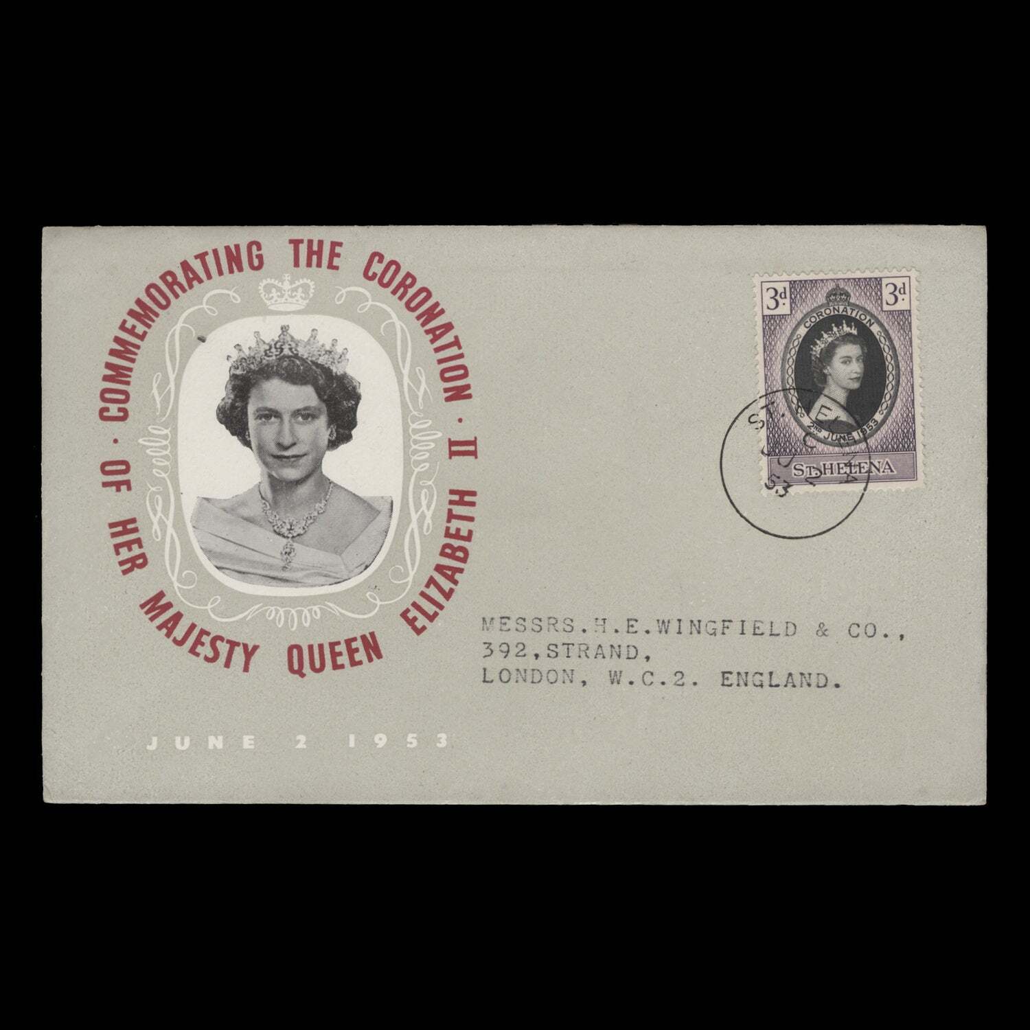 3d Coronation single on type 2a John Lister cover to England with ST HELENA circular cancel dated JU 2 53, the first day of issue. Generally fine. SG152; SC139Offers History