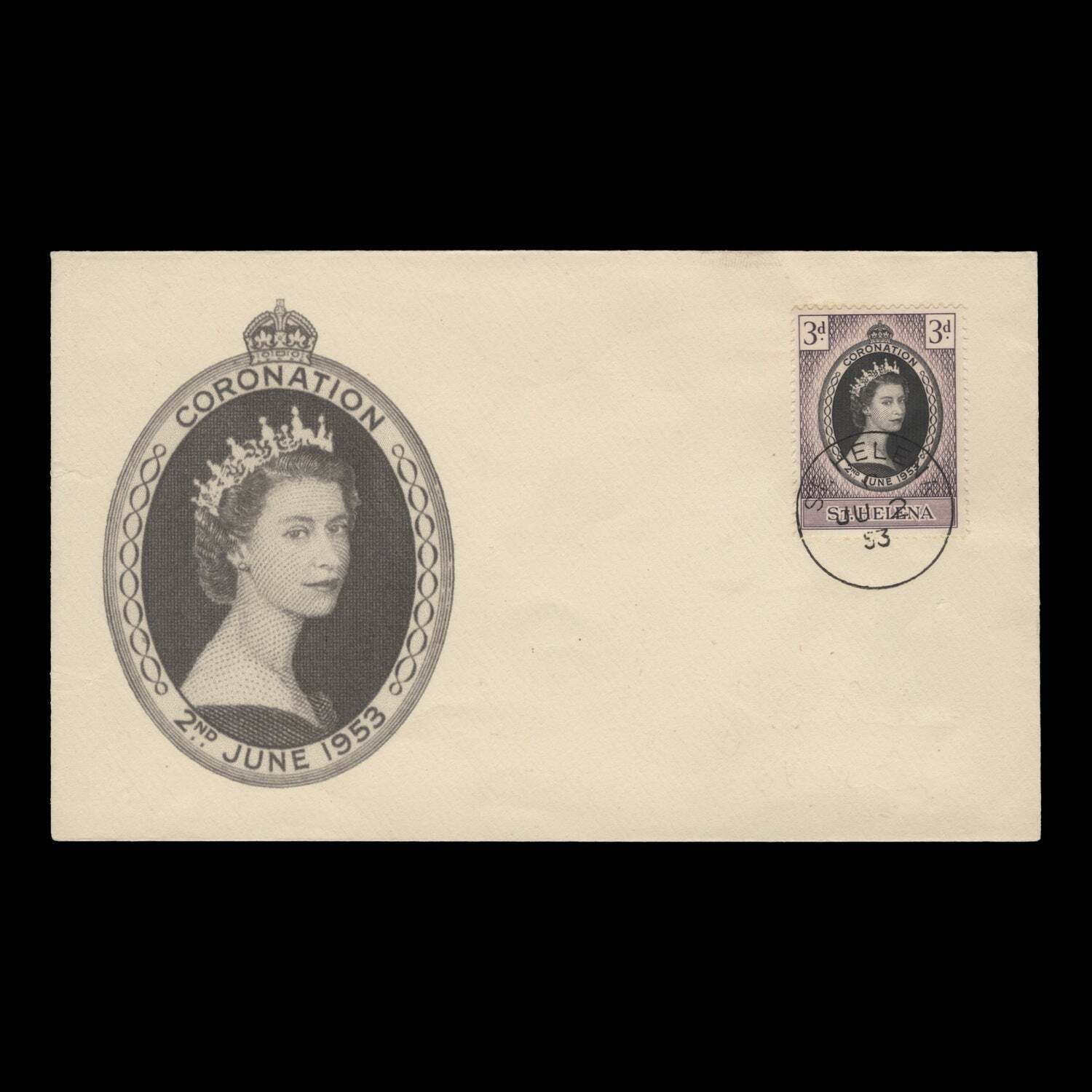 3d Coronation single on illustrated, unaddressed cover with ST HELENA circular cancel dated JU 2 53, the first day of issue. Generally fine. SG152; SC139Offers History