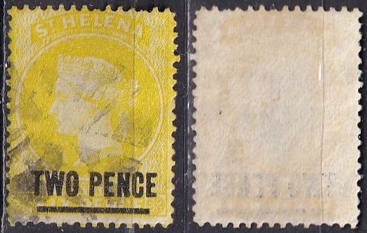 Saint Helena 30 (used) 2p on 6p Queen Victoria, yellow (1883)
