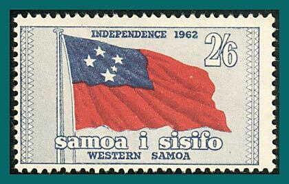 Stamp from set celebrating independence and showing Samoan flag.The stamp is shown in the scan.