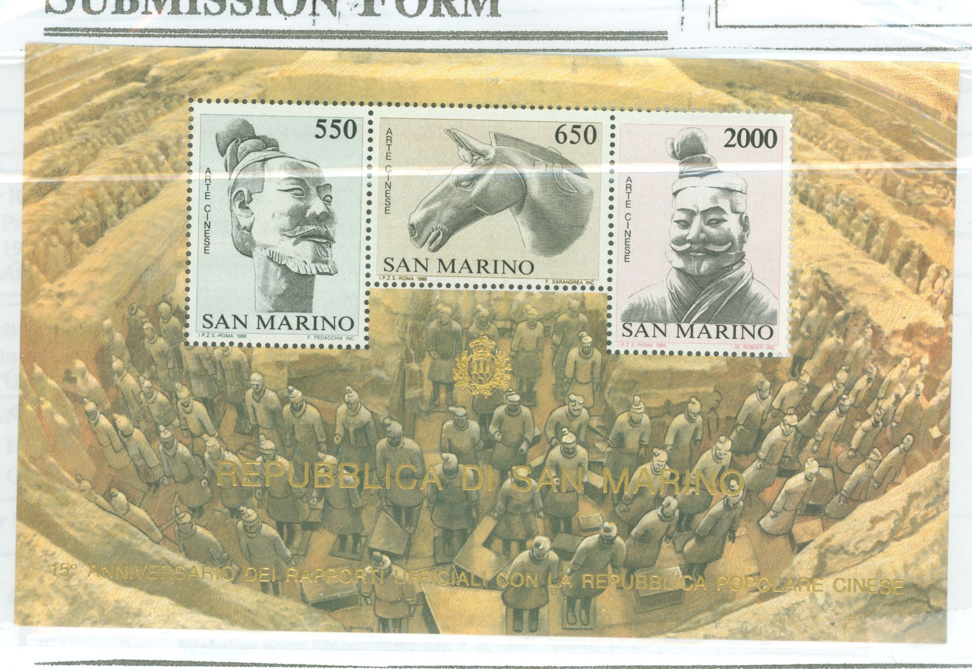 1986 Terra Cotta statuary APS Stamp Id: 501611351 APS Seller Id: 517055 Hinge Type: NH