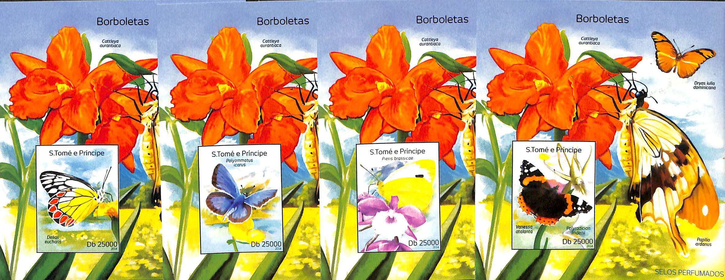 Sao Tome/Principe 2014, Butterflies 4 s/s,, imperforated, MNH