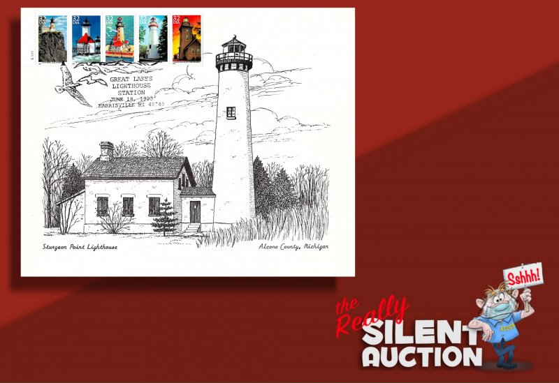 It has a second day cancel at Great Lakes Lighthouse Station, Harrisville, MI.