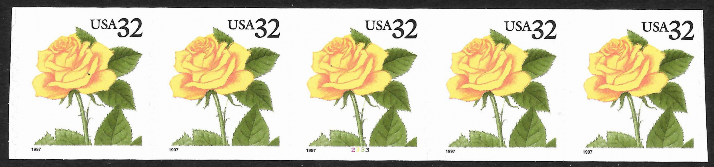 Sc 3054 32¢ Yellow Rose SA PNC/5 #2333, MNH
