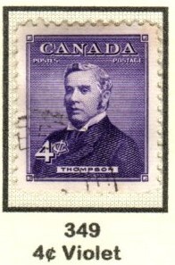 SC # 349 (4c) - Sir John Thompson, USED, hinged