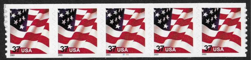 Sc 3633a 37¢ USA Flag, PNC/5 Plate #B1111, MNH