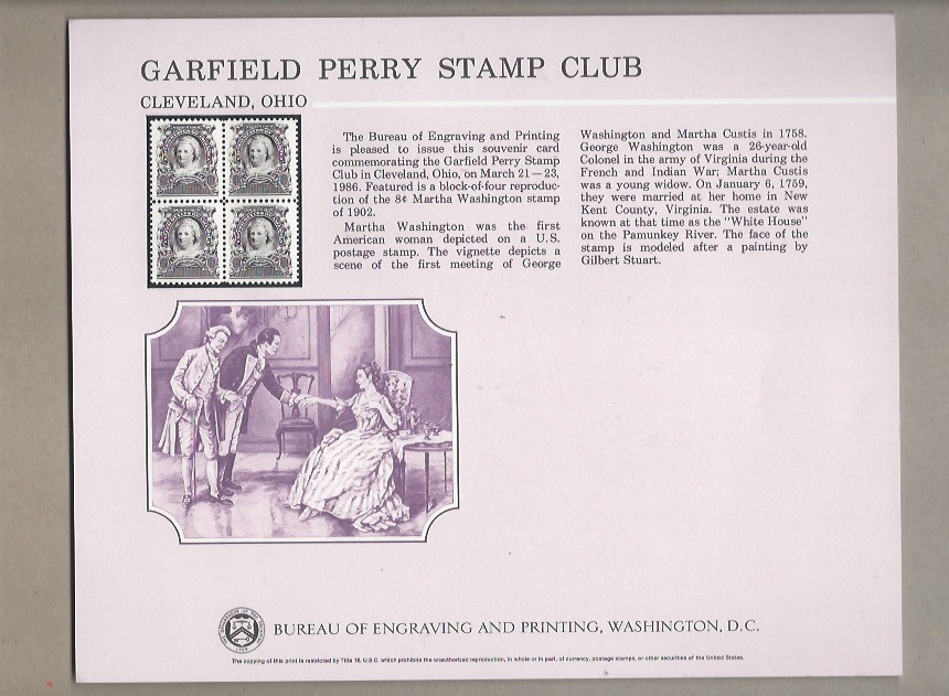 SC111 Sou Card GARFIELD PERRY STAMP CLUB Mar 21-23,1986Seller Information