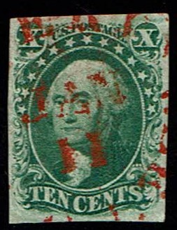 Eye catching red paint town cancellation. Large and equally balanced margins. GEM copy of this tough type III stamp.Seller Information