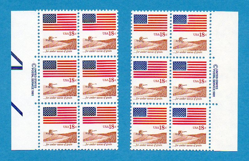Scott #1890 18c Flag Copywrite Blocks Matched Set Mint NH