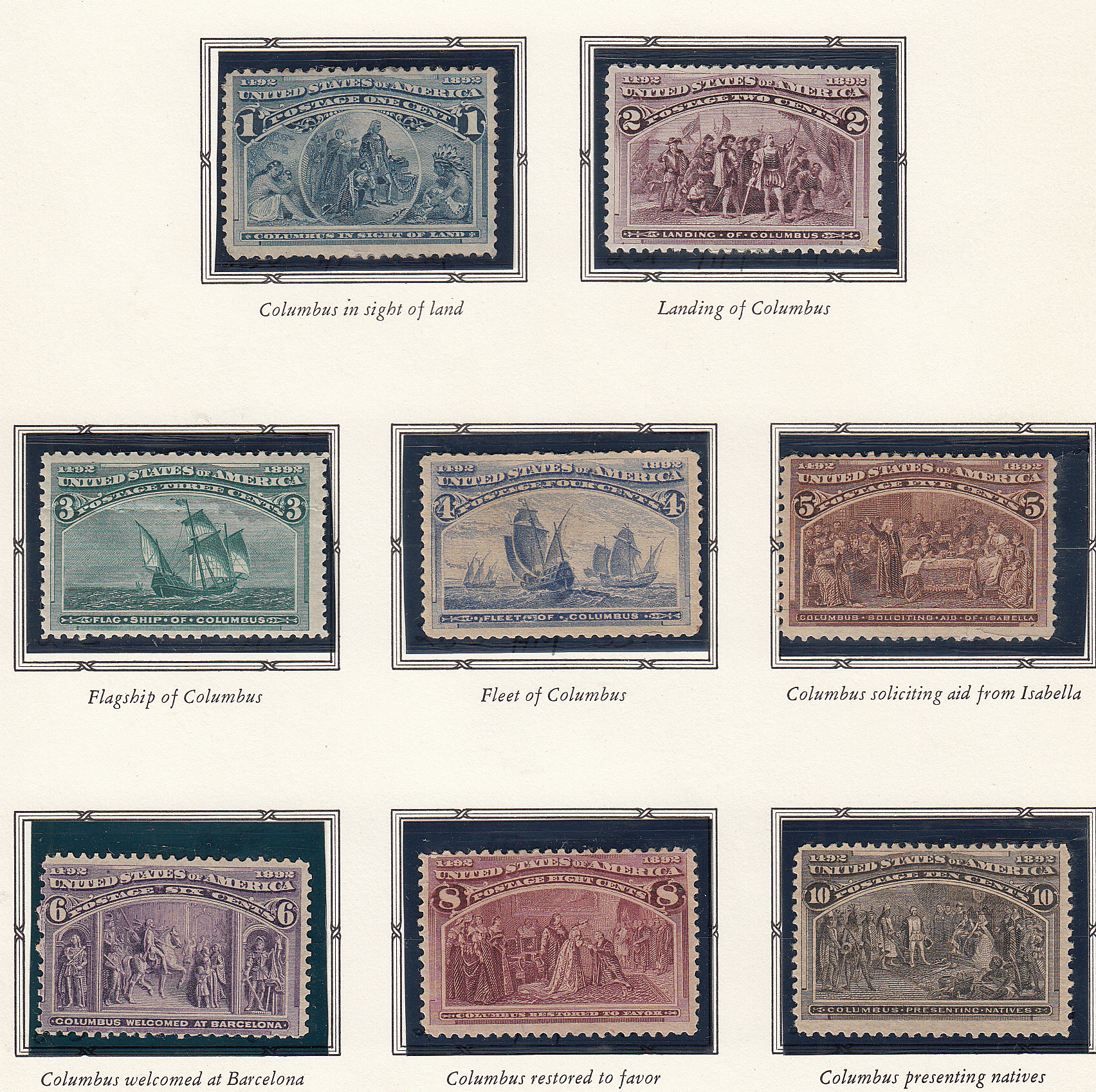 All 8 stamps on this page are Mint: H/Marks. Collection is from a local estate. Mounted on White Ace page. The mount holding the 5 cent issue is faulty and should be replaced. The Full White Ace page was to large to display so I had to reduce it for this site.Seller Information