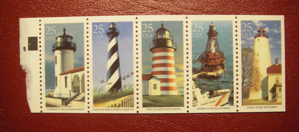 Scott 2474a, 25c Lighthouses, booklet pane with tab #2