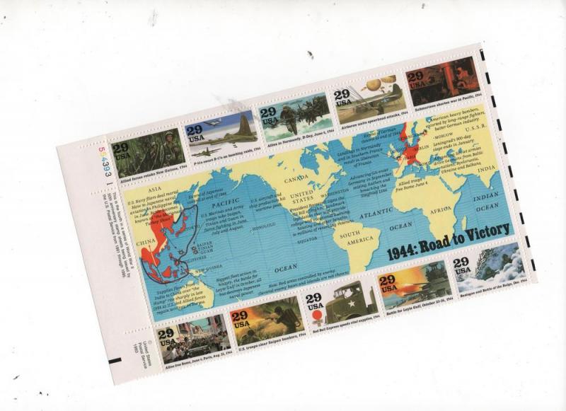 Scott # 2838 WWII 1944 10 Stamp sheet