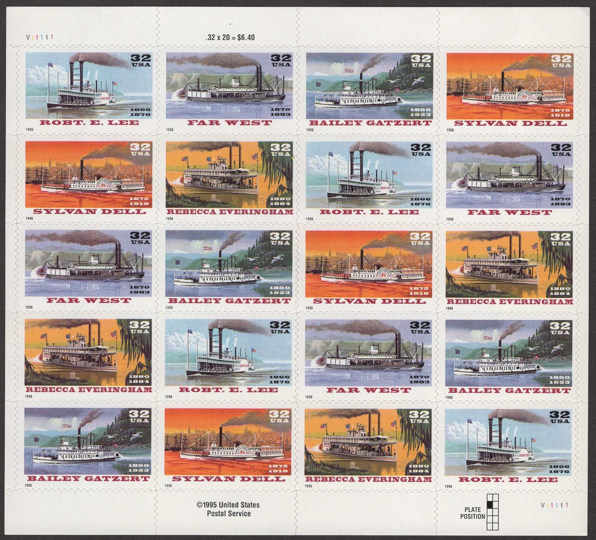 Scott 3091 - 95 MNH, Sheet