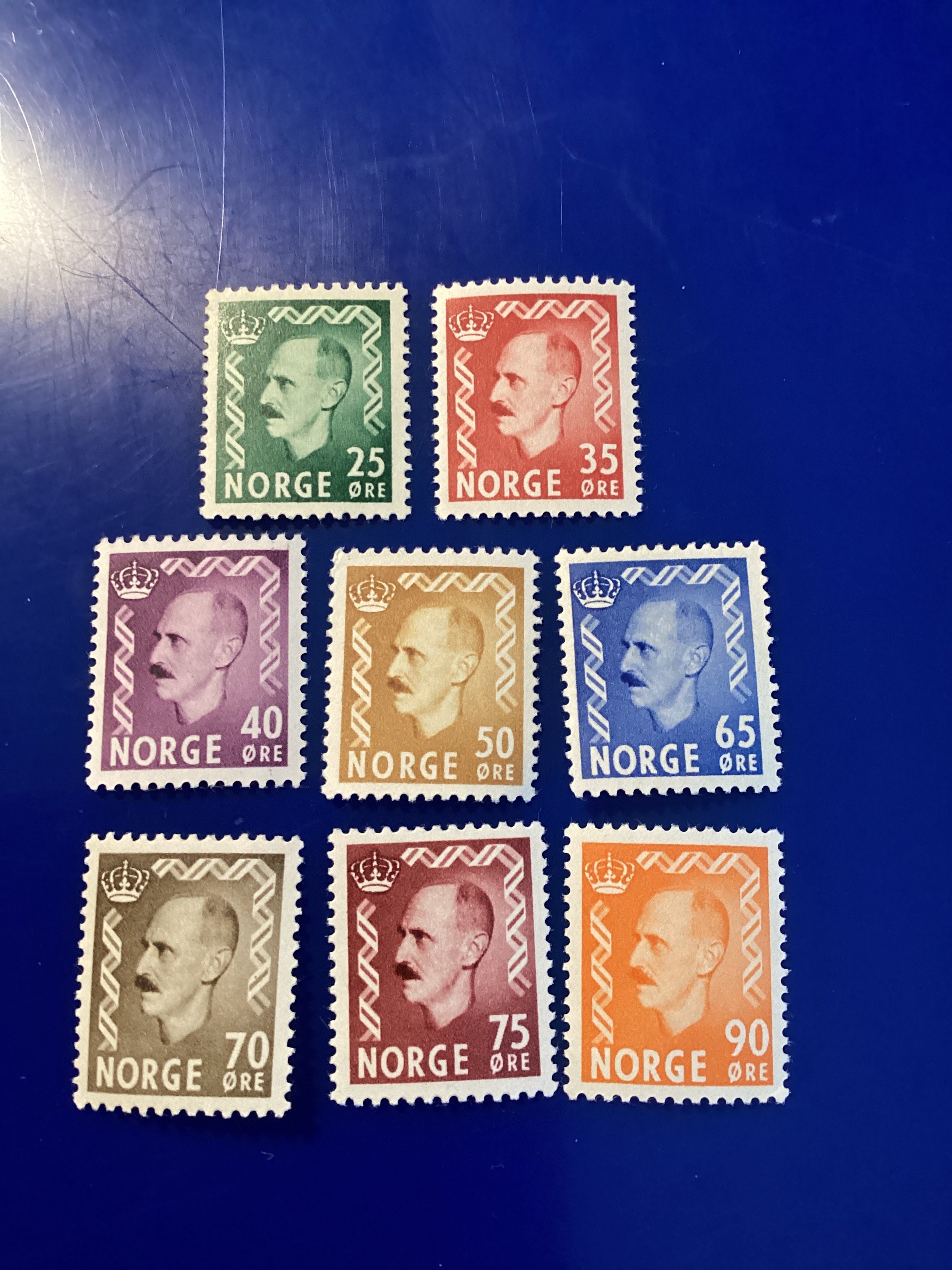 scott 345-352 from Norway. Several are mint with a VLH. Others are mint never hinged. All centering is XF/Superb with OG. The Scott Catalog Value is $38.50