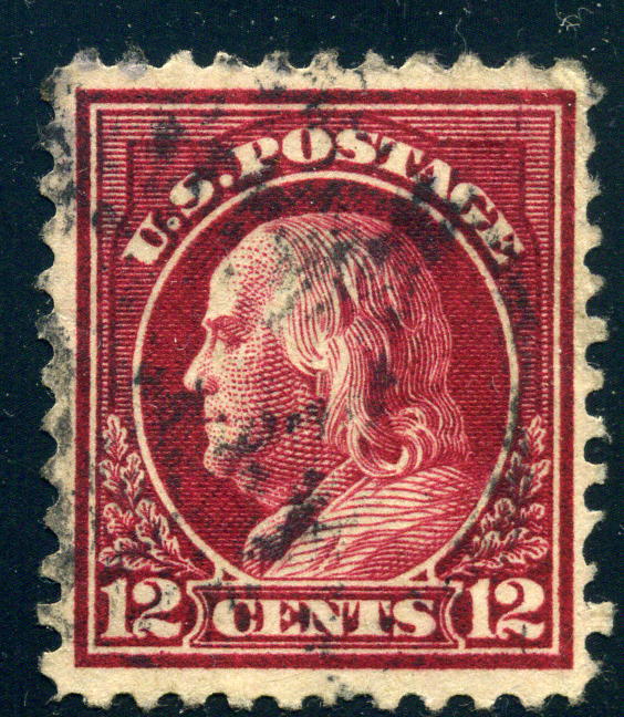 US 1917-19 - FLAT PLATE PRINTING 12 cent claret brown, Perf 11, unwatermarked 2012 Scott catalog value $0.40