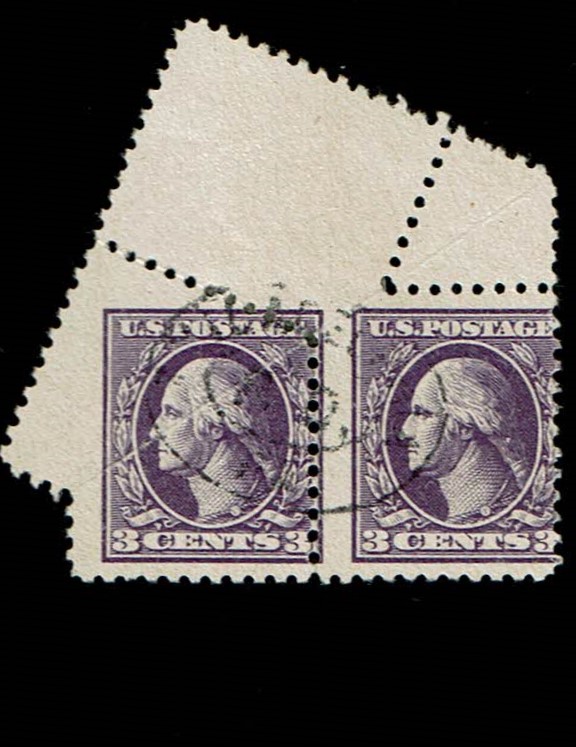 Lightly struck cancellation. Impressive margin pair with crazy perforations caused by pre-perfing production fold over. A gorgeous multiple.Seller Information