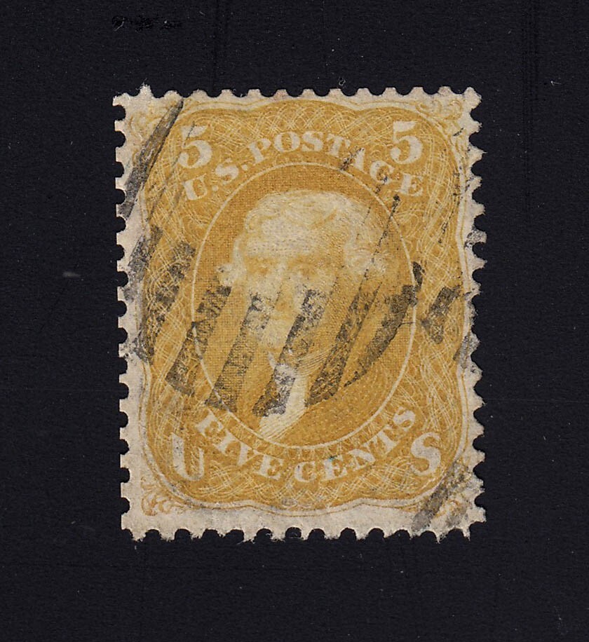 Scott #67 5c Jefferson Buff USED - Small Tear Bottom