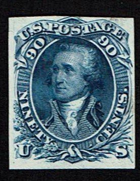 Scarce first design of 90c Washington.Thin spots and repairs. Bold rich shade.