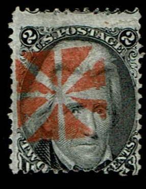 Perfectly struck red segmented cork cancellation. Incredibly fresh example. Seldom seen with such a lovely cancellation.Seller Information