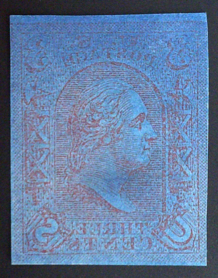 This is a Scott #79-E9e - 3c - Loewenberg Decalcomania.Plate on white paper treated with prussiate of potash. The paper turns blue when wet.