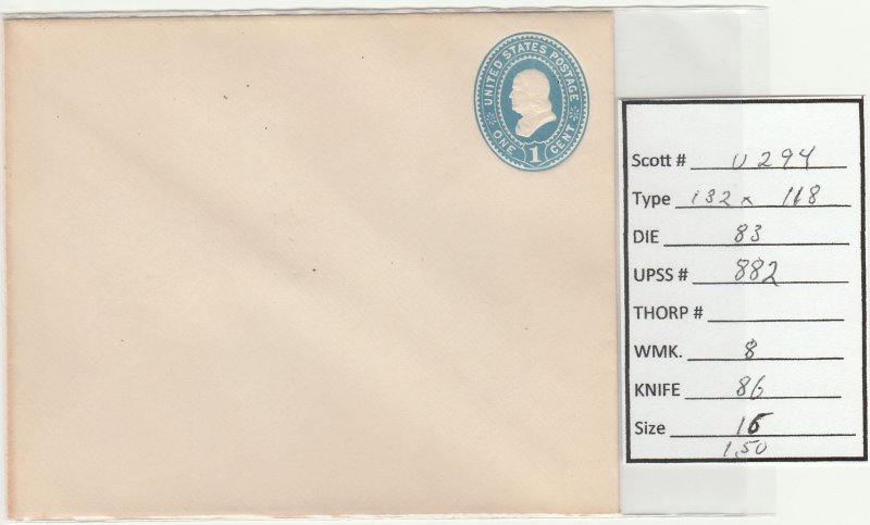 Scott# U294 Die83 UPSS#882 US envelope.