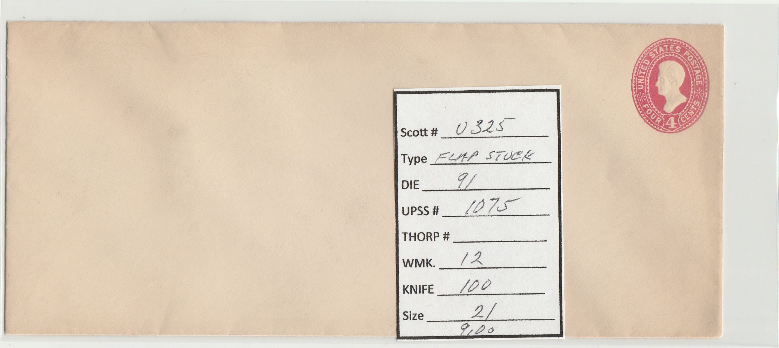 Scott# U325 Die91 UPSS#1075 US envelope.