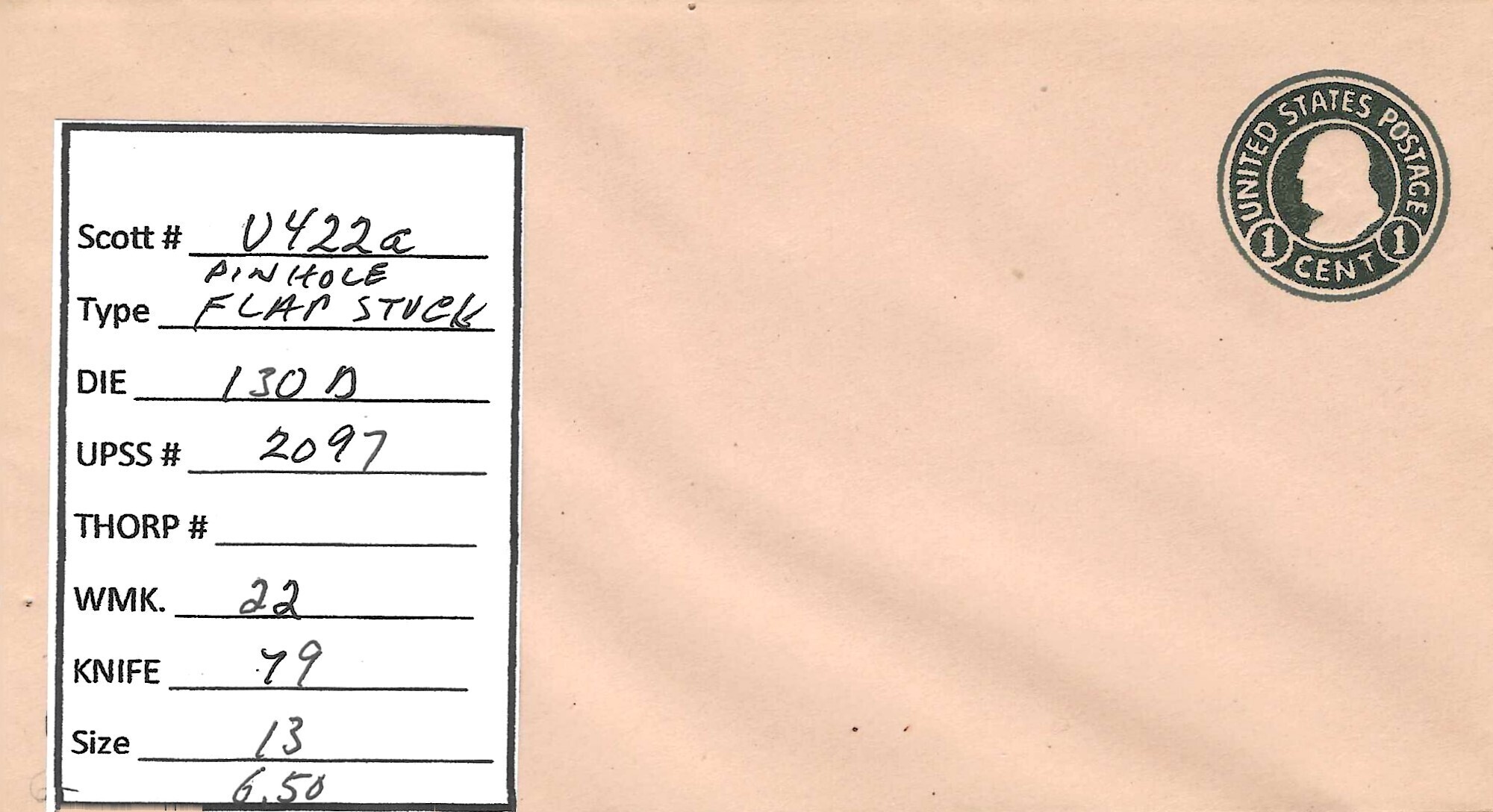 Scott# U422a D130 UPSS#2097 US envelope.