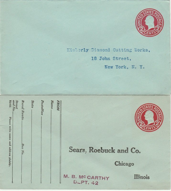 Scott# U432 2 US envelopes size 10.