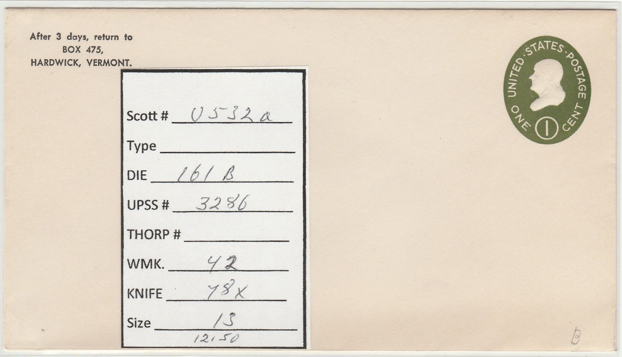Scott# U532a Die 161 UPSS#3286 US envelope.