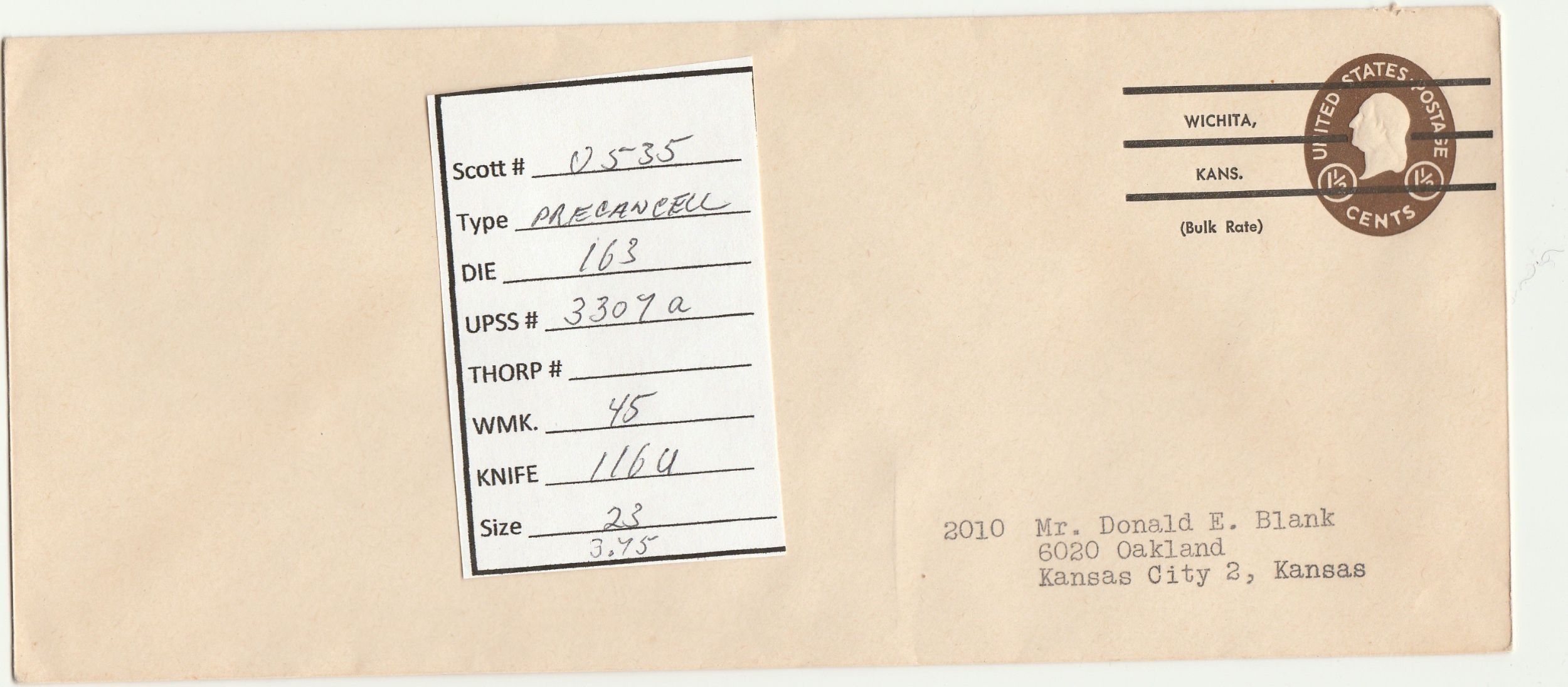 Scott# U535 Precancelled US envelope.