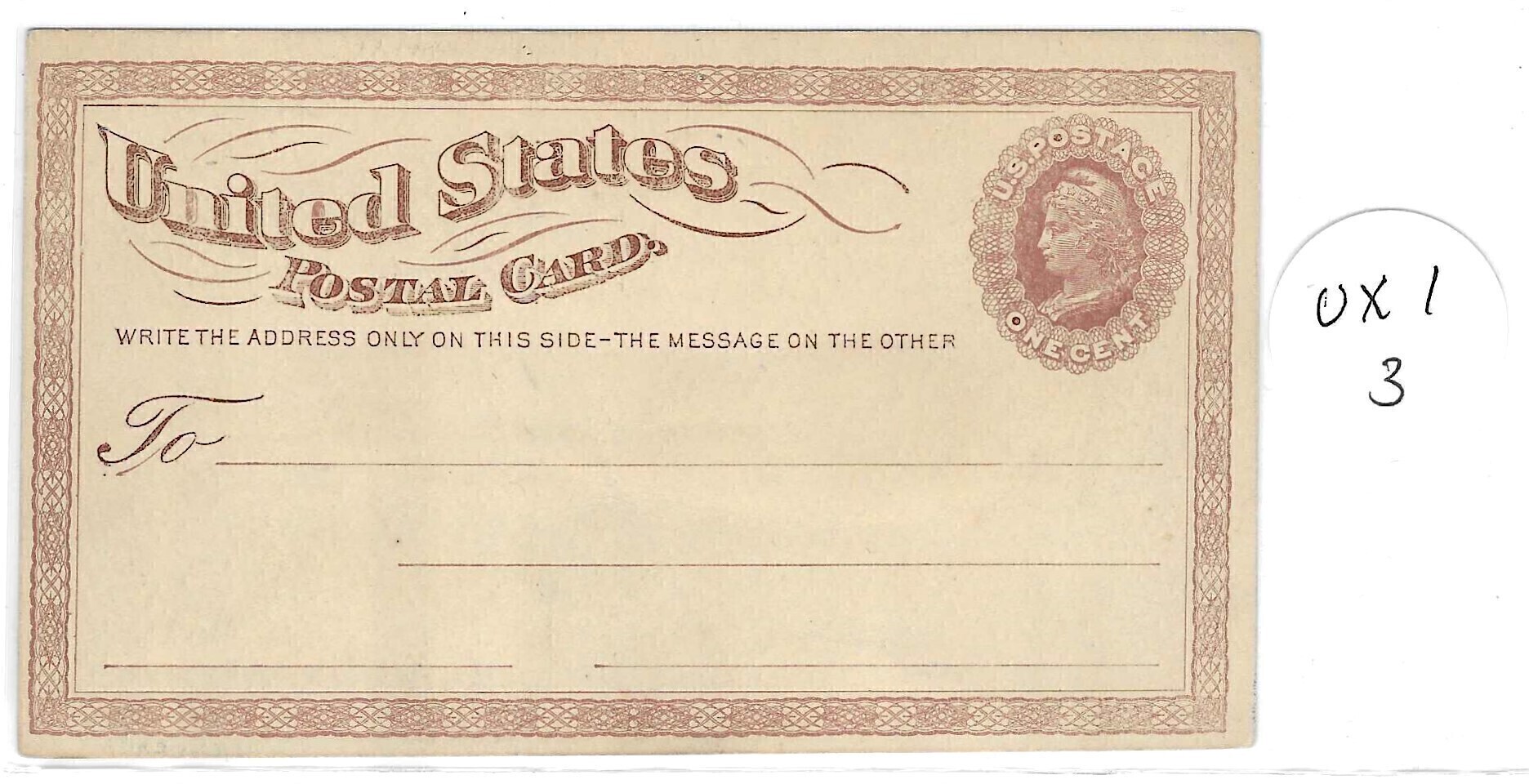 Scott# UX1 Single US Postal Card