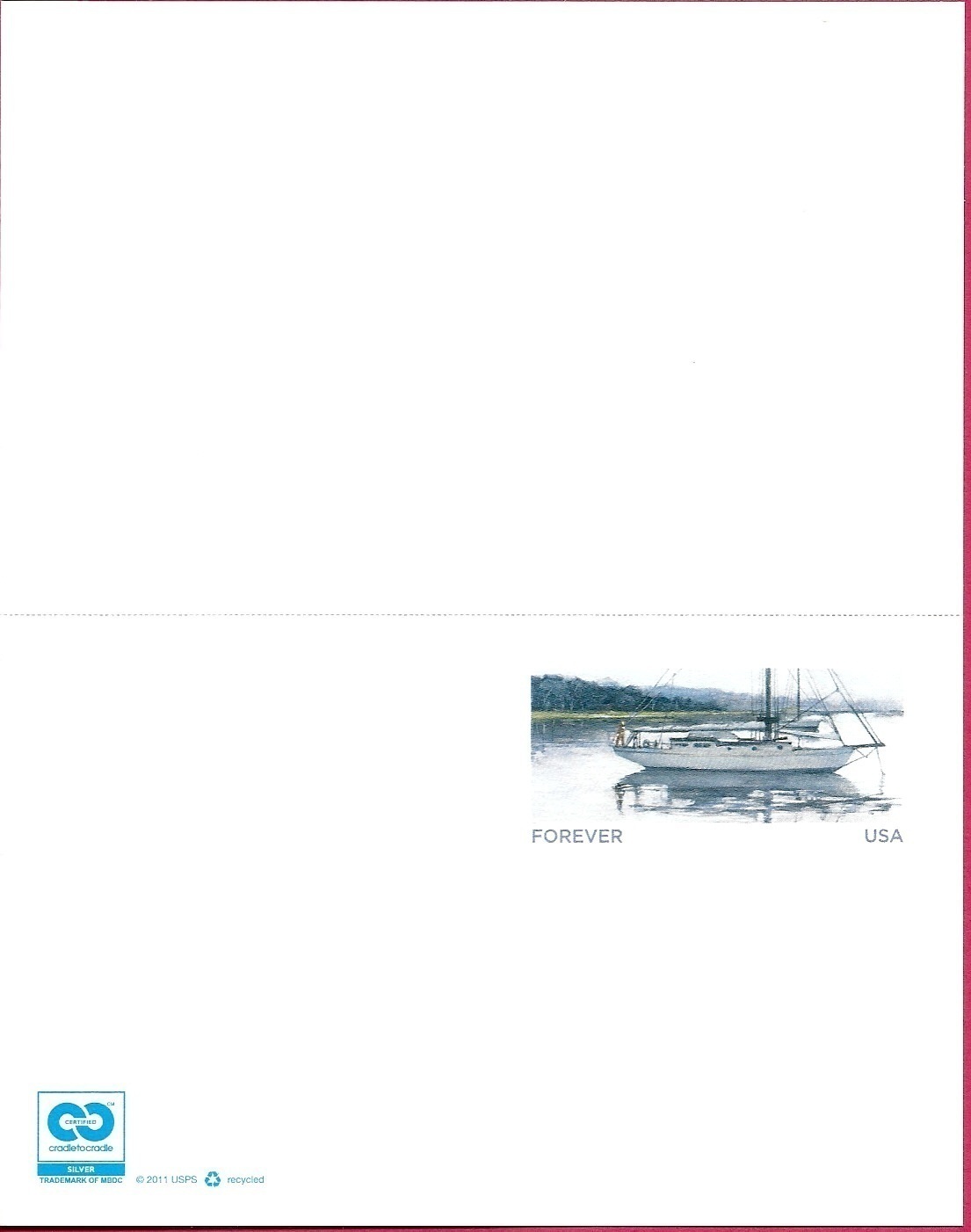 UPSS#MR60 Issue of 2012 Sailboat Message-Reply postal card. Un Folded Card is mint no writing on front or back.