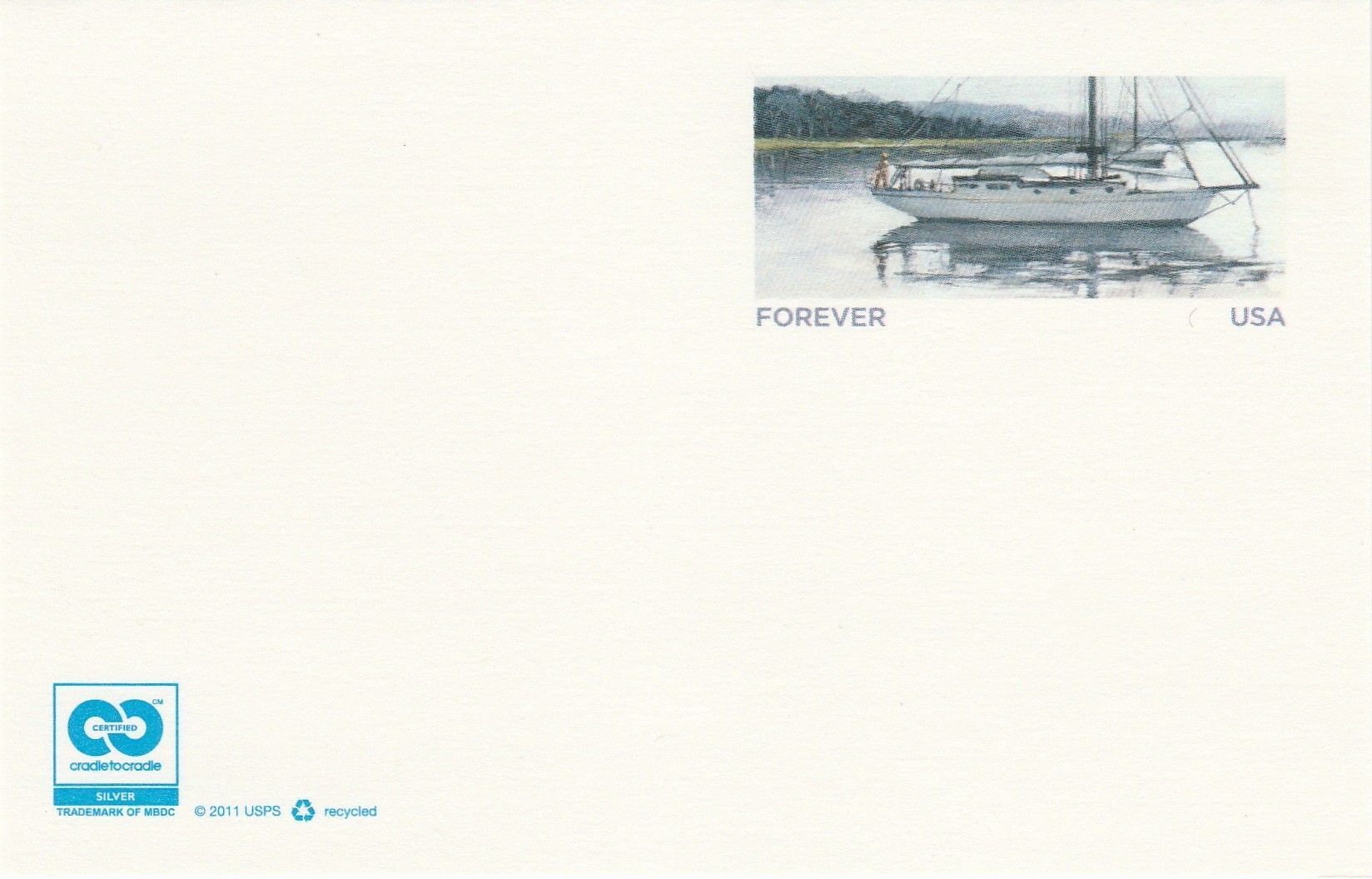 UPSS#MR60 Issue of 2012 Sailboat Message-Reply postal card. Folded Card is mint no writing on front or back.