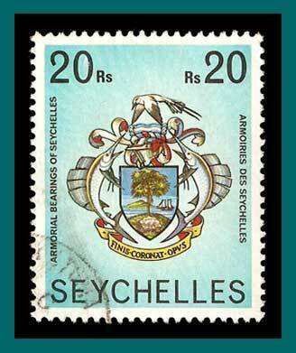 Single used stamp from wildlife definitive issue with no imprint date and currency as Rs.The design is the Seychelles Coat of Arms.