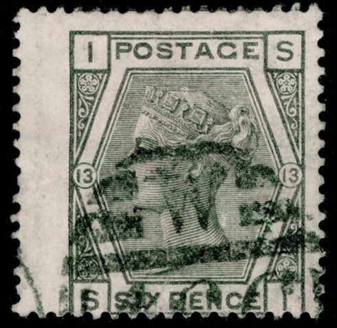 SG147, 6d grey PLATE 13, good USED. Cat £70. THICK PAPER SI